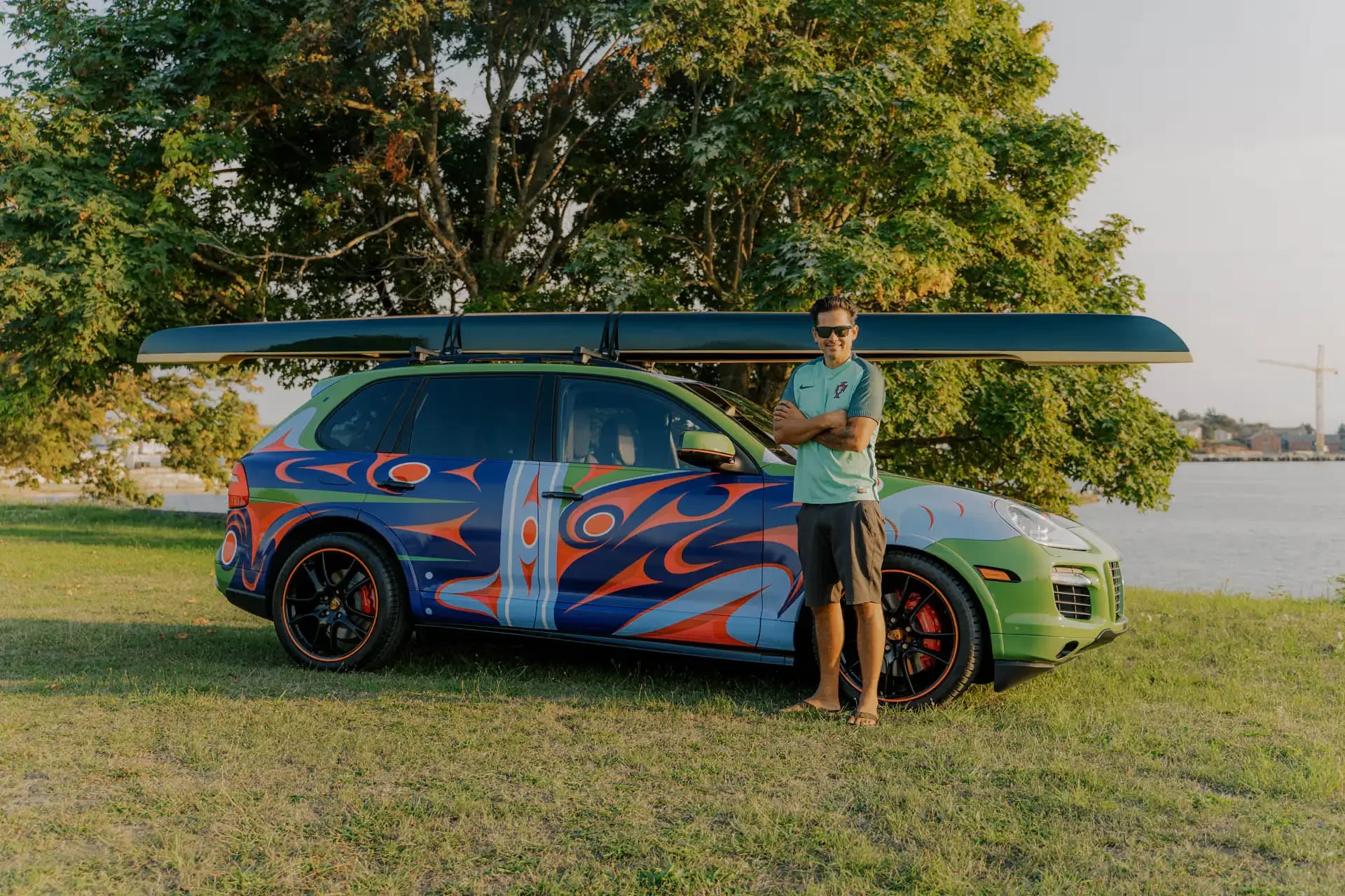 At Porsche Centre Victoria, restoration is more than a return to form—it’s a reimagining of legacy through artistry, precision, and bold vision. This one-of-a-kind build pays tribute to the spirit of the West Coast, featuring a custom-painted hood inspired by Indigenous art traditions. The collaboration between Porsche Victoria and Coast Salish design was brought to life by renowned Indigenous artist Mr. Luke Marston. The theme of this build centers on race heritage and the cultural legacy shared by both Porsche and Coast Salish legend. This Cayenne symbolizes Porsche’s race pedigree and the canoe racing traditions of the Coast Salish people. The designs evoke speed, power, protection, nature, history, and—most importantly—family. Traveling and racing bring us together as family.